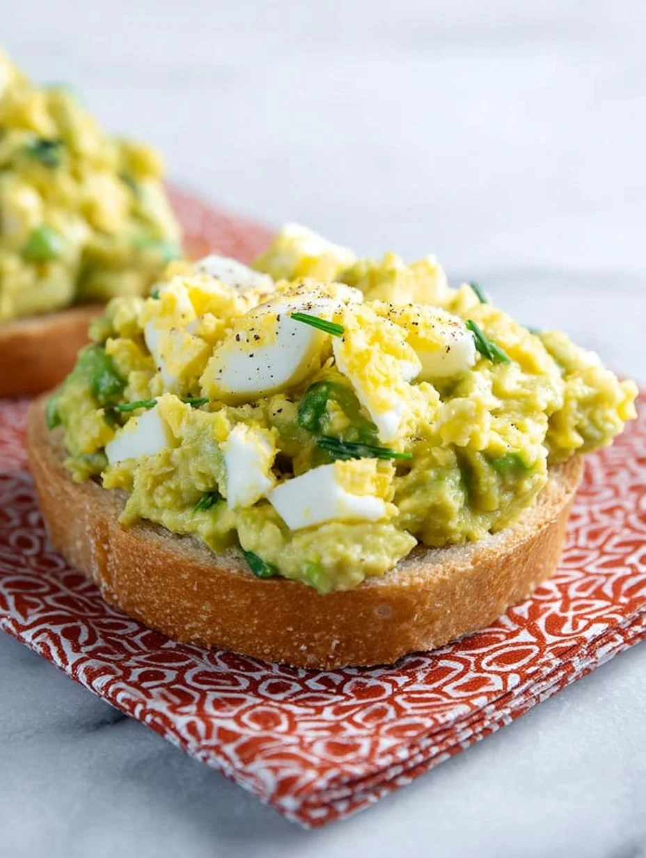 A bright and creamy twist on a classic egg salad made with ripe avocados, hard-boiled eggs, lemon, and herbs.