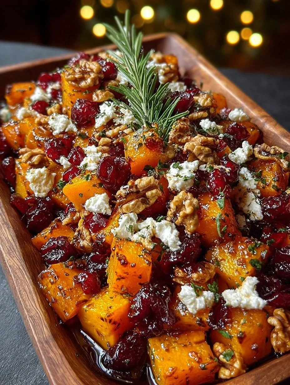 PrintCaramelized Butternut Squash with Feta, Walnuts & Cranberry-Honey Glaze