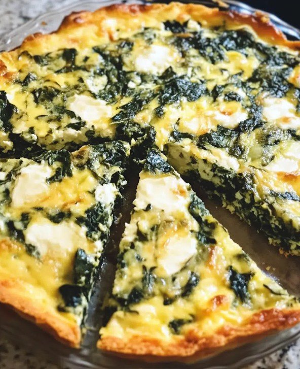 A light, savory pie featuring tender spinach and creamy eggs, perfect for a quick breakfast or brunch without the fuss of pastry.