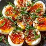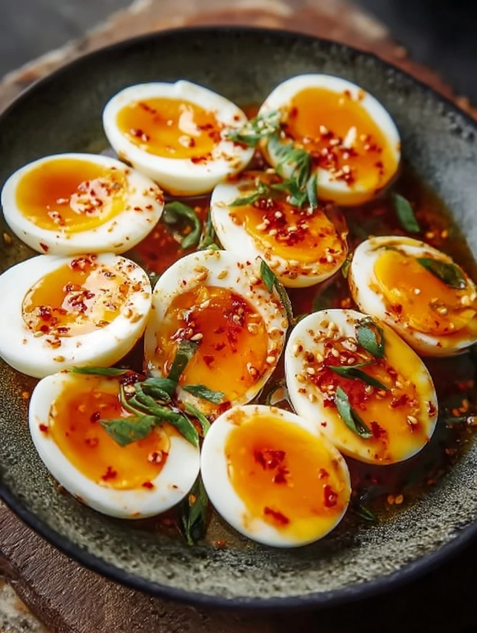 - Before serving, garnish with chopped green onions if desired. Enjoy your Korean Marinated Eggs!