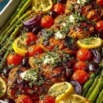 Bright, zesty, and loaded with flavor, Lemon Feta Chicken Sheet Pan is a weeknight hero. Tender chicken roasts with potatoes and colorful veggies in a lemon-garlic-oregano blend, then gets topped with creamy, salty feta. It’s a simple one-pan meal with quick prep, easy cleanup, and big Greek-inspired taste. Perfect for busy nights, meal prep, or casual dinners with friends.