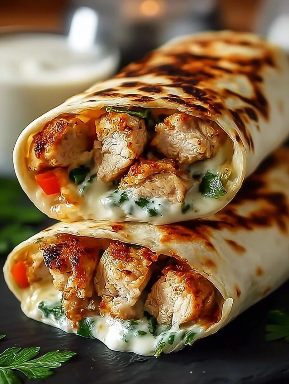 Step 6: Fill low-carb tortillas or lettuce leaves with the cheesy garlic chicken. For tortillas, toast wraps seam-side down in a clean skillet over medium heat 2–3 minutes per side until golden and melty.