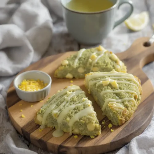 These matcha scones are soft, buttery, and infused with a delicate green tea flavor, finished with a hint of optional lemon glaze or white chocolate chips. A perfect treat for brunch or a cozy tea session.