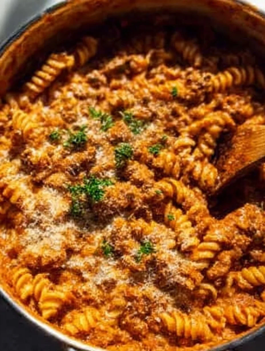 This one pot creamy tomato beef pasta is rich, cozy, and fast. It cooks the pasta right in the sauce, so every bite is full of flavor. It is perfect for busy nights when you want real comfort without a pile of dishes. Ground beef, tomatoes, and cream come together to make a silky sauce the whole family will love.