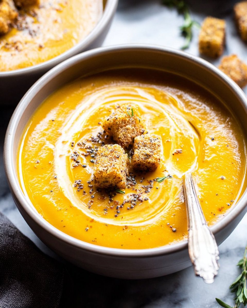A comforting roasted sweet potato and carrot soup with lentils, balancing rich flavors and warm spices, perfect for cool nights.