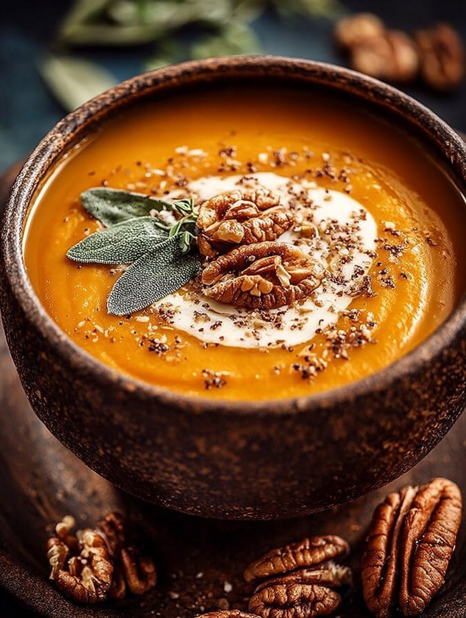A comforting soup that blends sweet potatoes, apples, and coconut milk for a cozy, autumn-inspired dish.