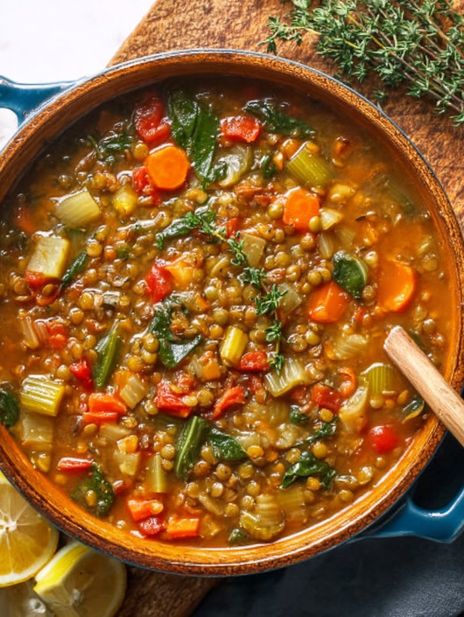 A hearty one-pot vegan lentil soup that is simple to make and perfect for meal prep. Packed with nutritious vegetables and lentils for a comforting meal.