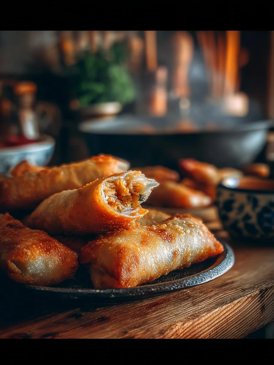 Crispy egg rolls filled with savory ingredients and a burst of unique flavors, perfect for game nights or parties.